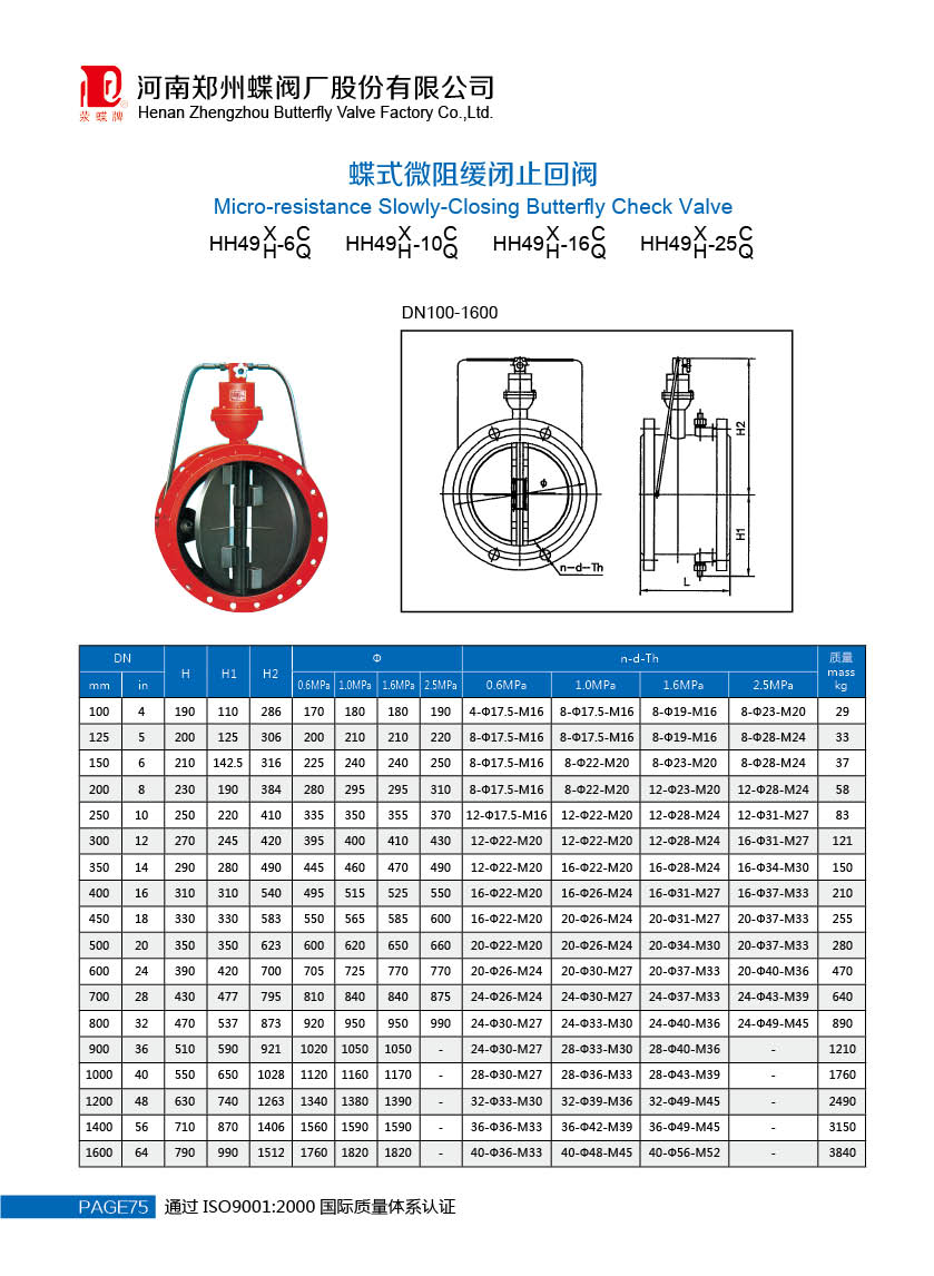 微阻緩閉止回閥主要適用于給排水管道,安裝在水泵出口處用來防止介質逆流和消除破壞性水錘,并且有效地減少閥門關閉水錘壓力,使管網安全運行。它具有閥瓣輕、開度大、節電效果好,流體阻力小,水錘消除機構設計,密封***好、***、使用壽命長、運行平穩、無振動、無噪聲等特點。